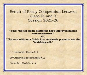 Result of Essay Competition between Class IX and X