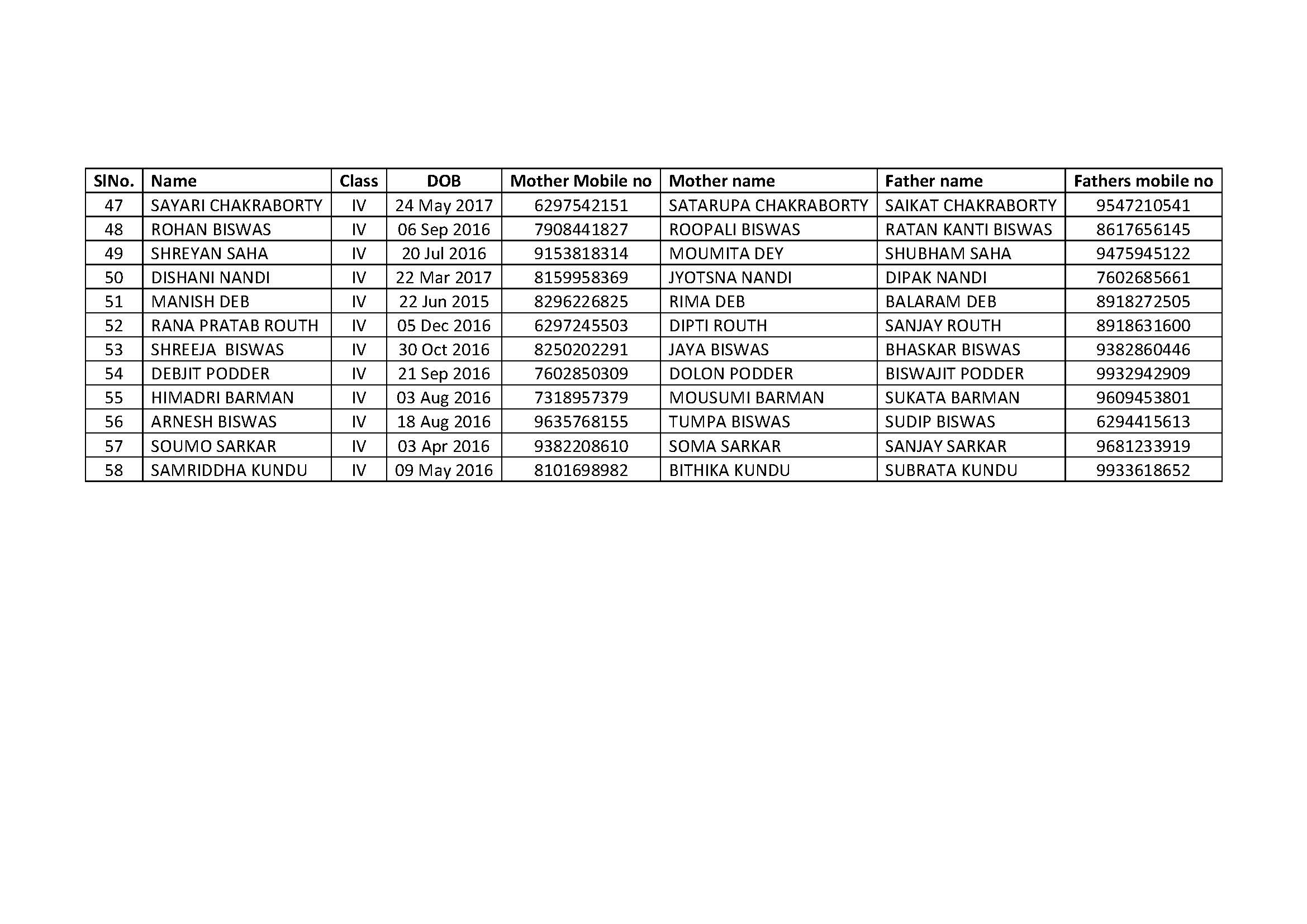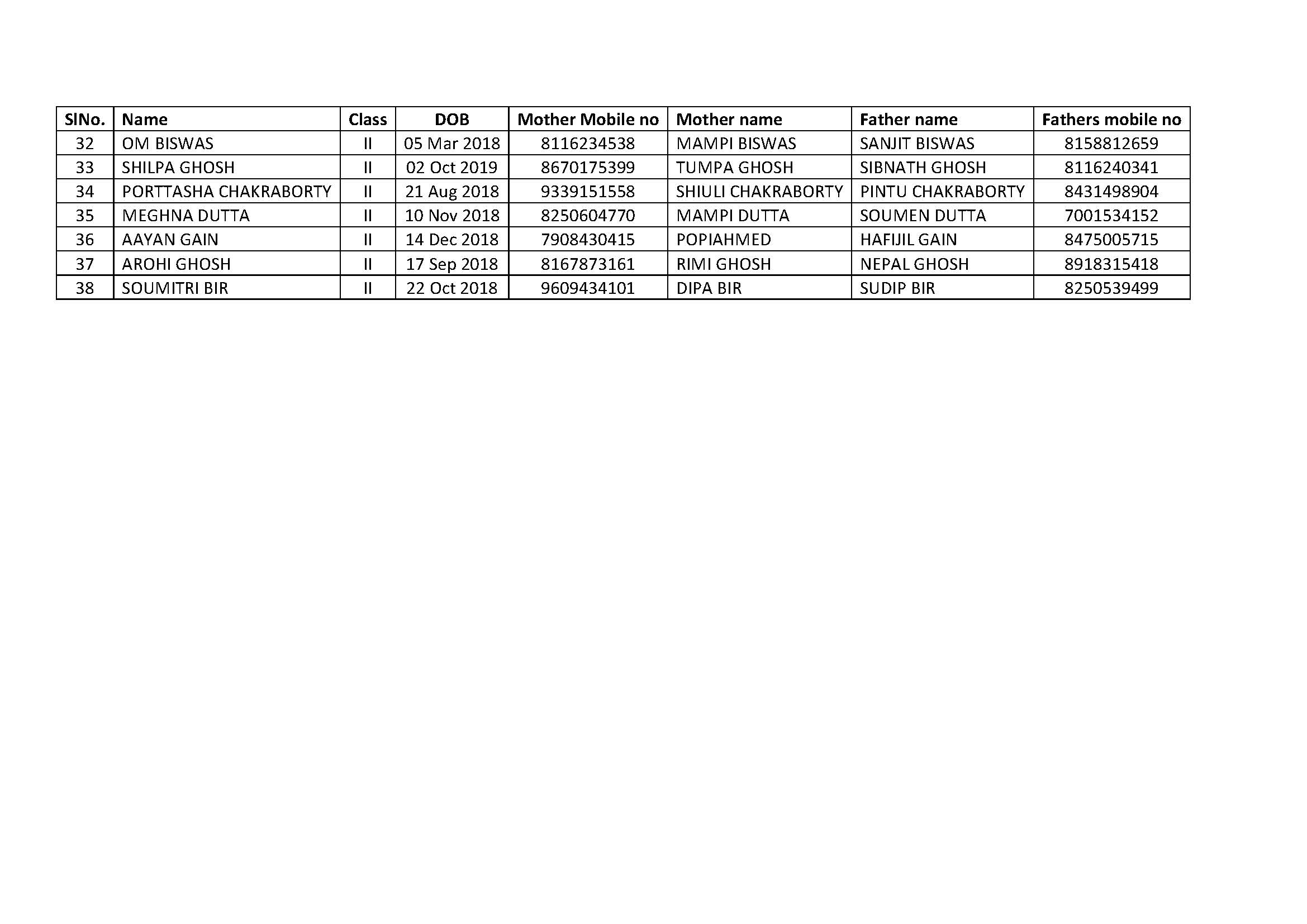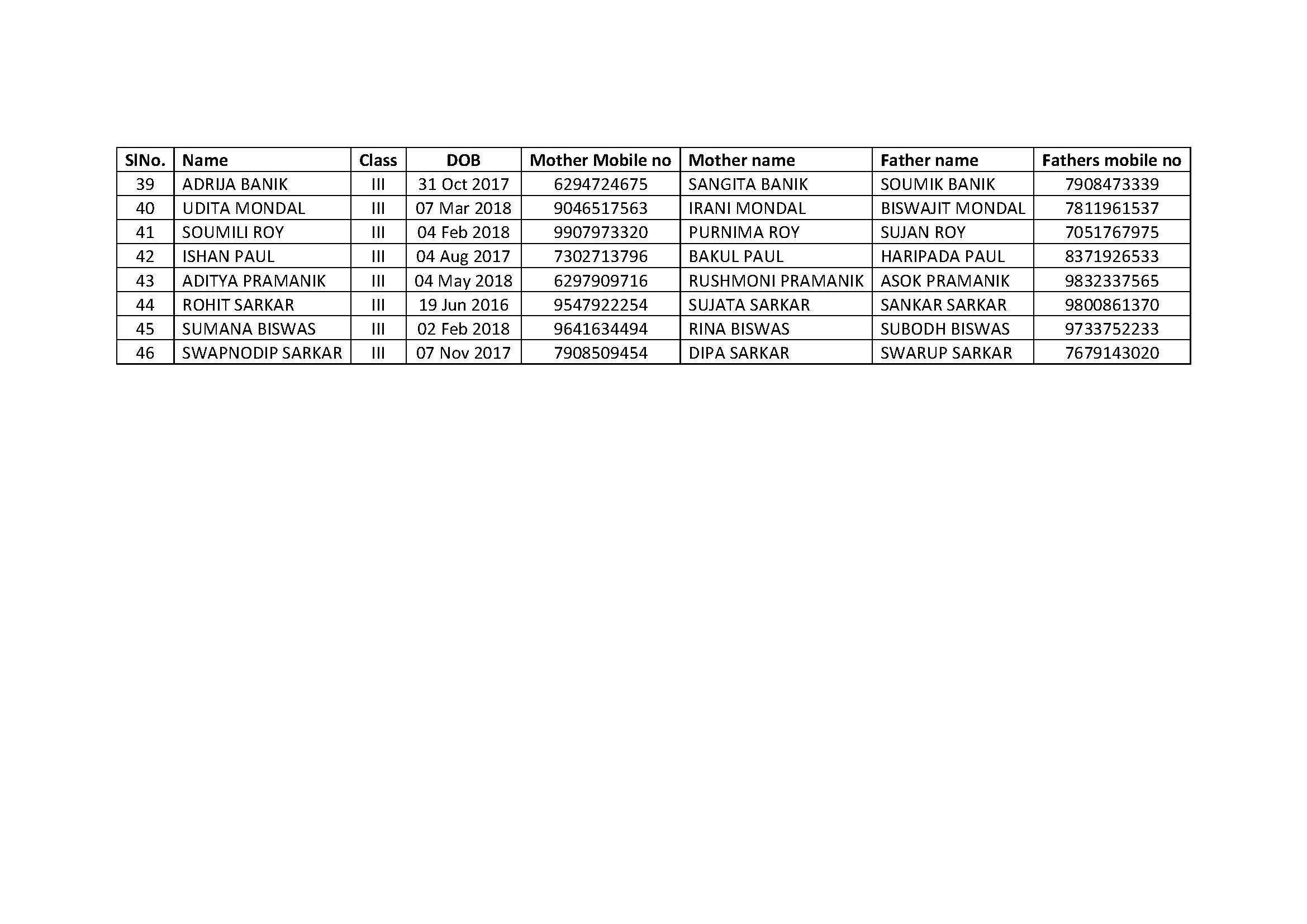 FOR CLASSES LN to VIII