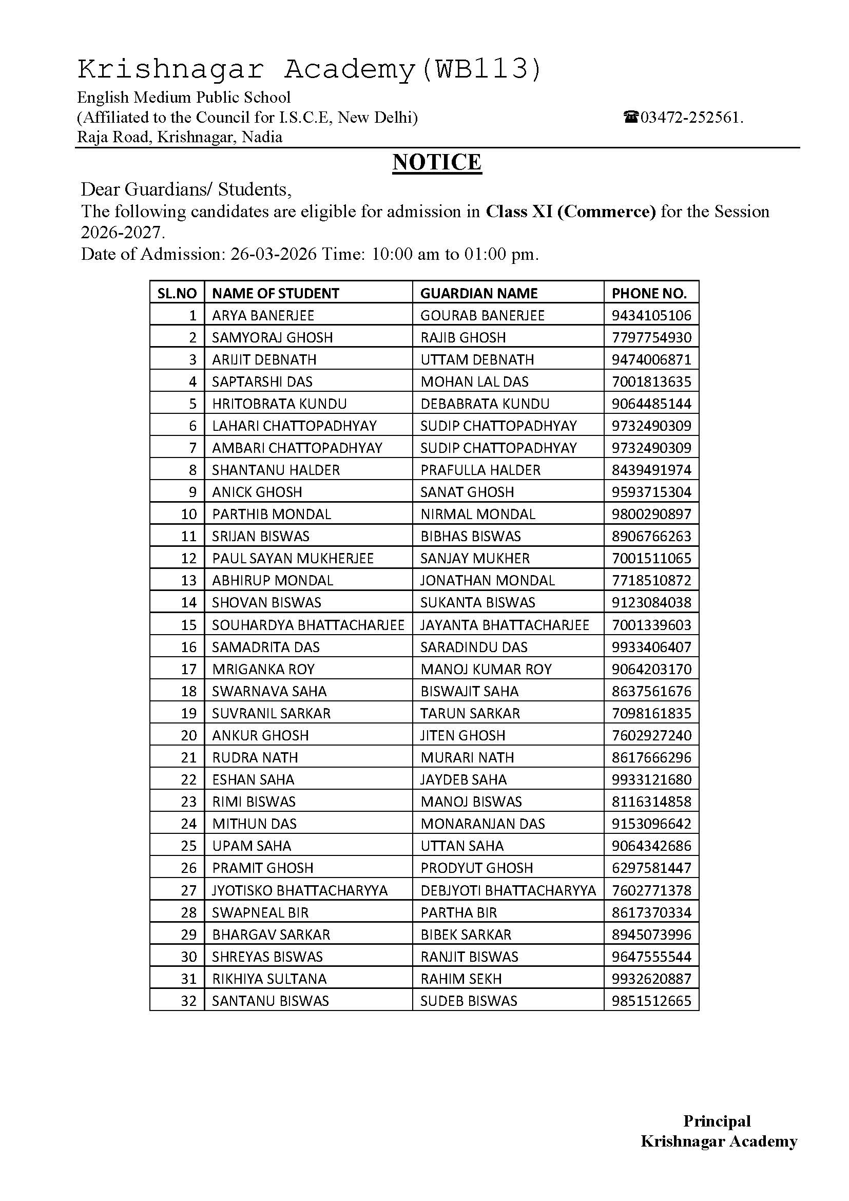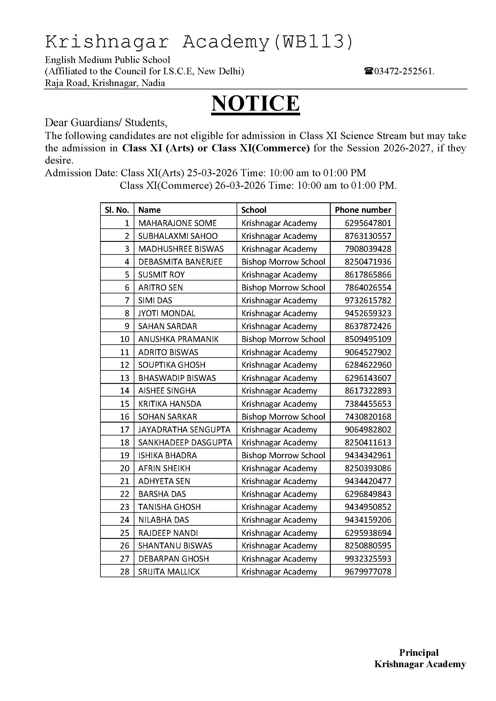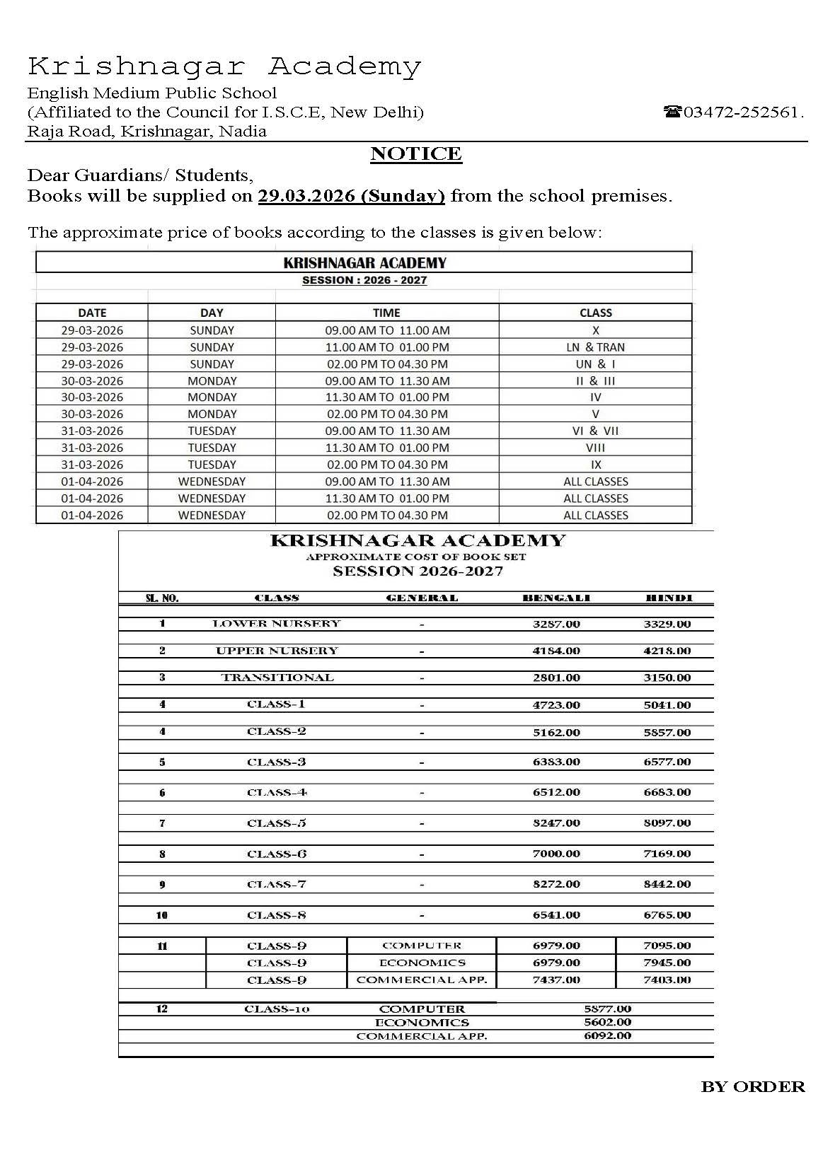 You are hereby notified that the Admission Form for Classes LN to VIII (Session 2026-2027) will be available for distribution from October 10, 2025, at the School counter.
