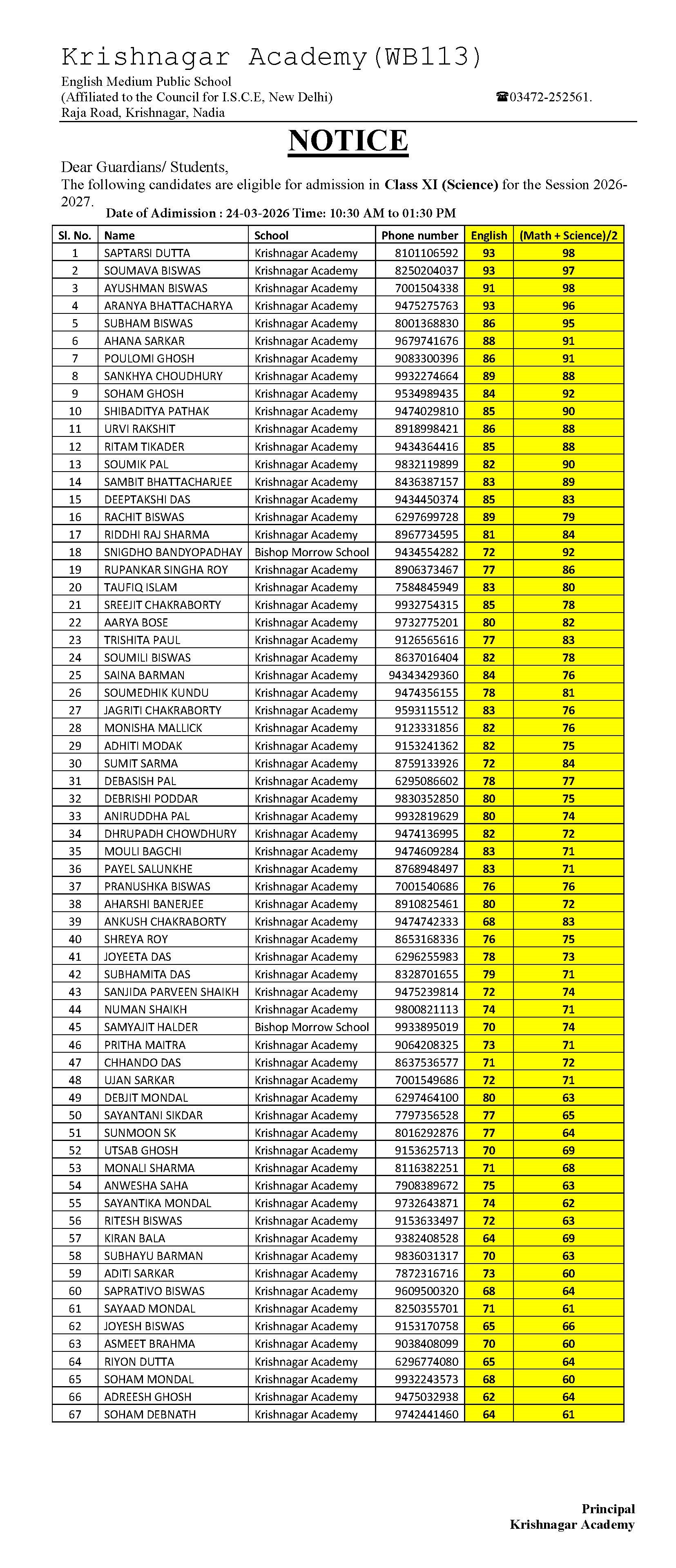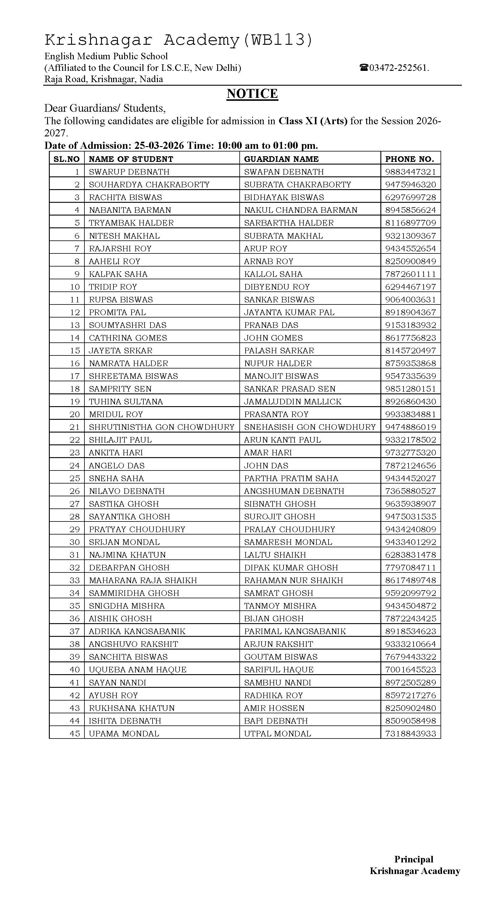 Apply within 7 days to academykrishnagar@gmail.com.
